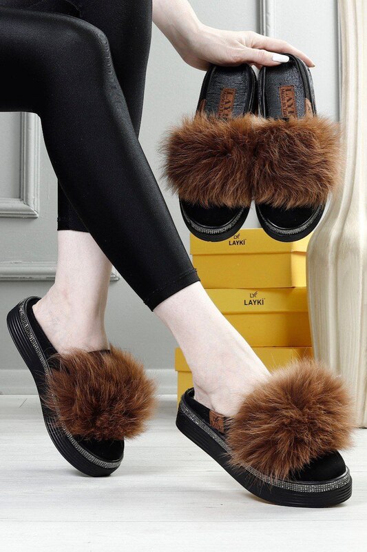بابوج شتوي مع فروه - اسود